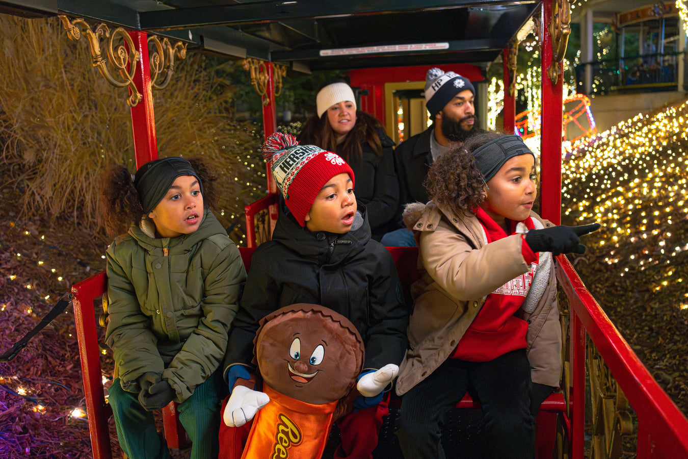 Wrap yourself in Hersheypark magic this season! This cozy crewneck sweatshirt features beloved park characters dressed in festive holiday attire, b...