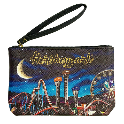 Carry your essentials in style with the Hersheypark Night Sky Wristlet Wallet. This sleek accessory features a stunning night sky and skyline desig...